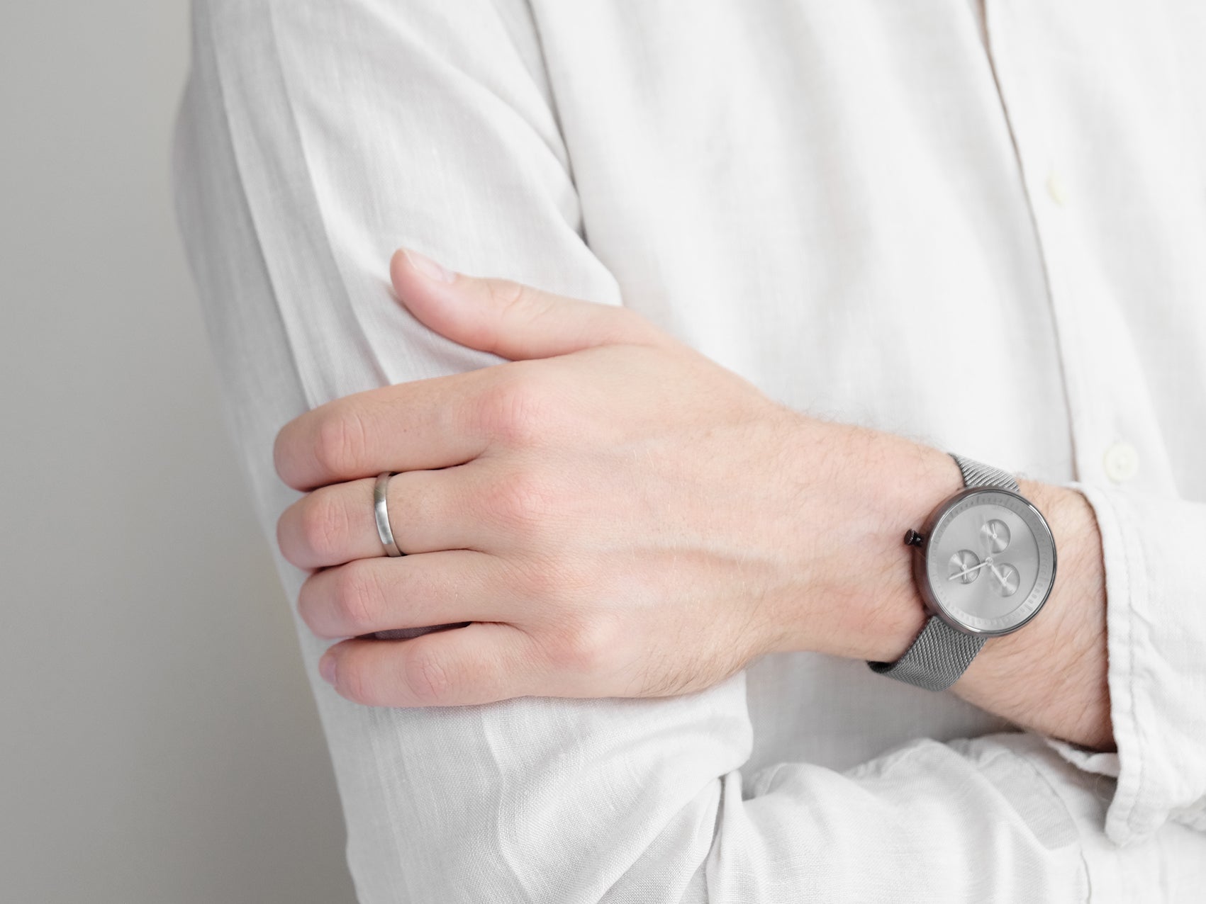 A timeless essential for everyday wear. Featuring a refined mix of brushed and polished finishes. Perfect size for stacking or wearing solo. With a rounded, polished interior for comfort, and crafted from durable, hypoallergenic stainless steel.