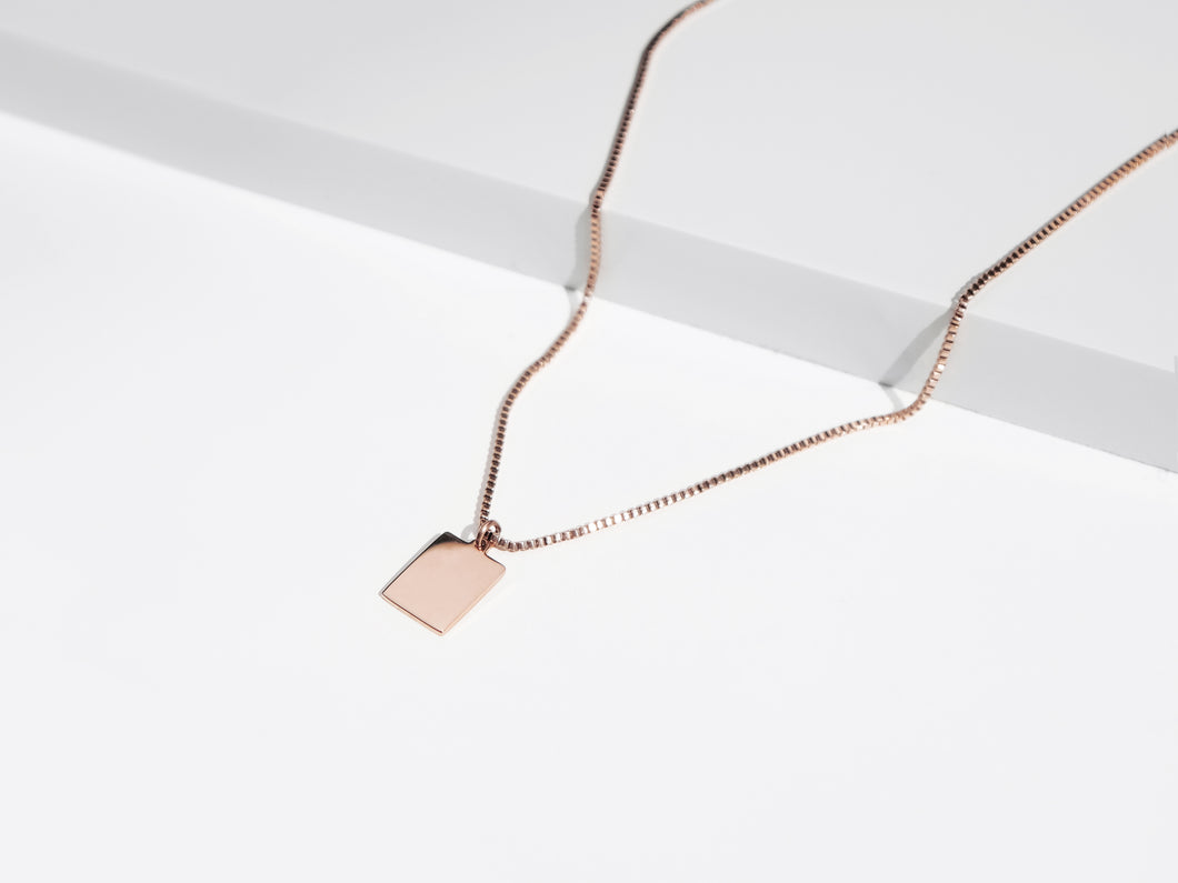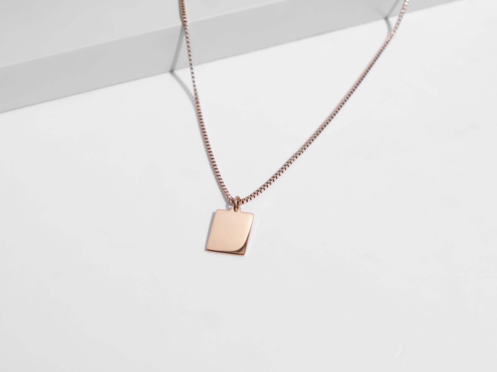 This contemporary shaped necklace is perfect to personalize for yourself or as an extra meaningful gift. Add your own message, date or whatever is special to you or the receiver. Both the pendant and chain are made of stainless steel which comes with the benefits of being hypoallergenic and tarnish resistant.