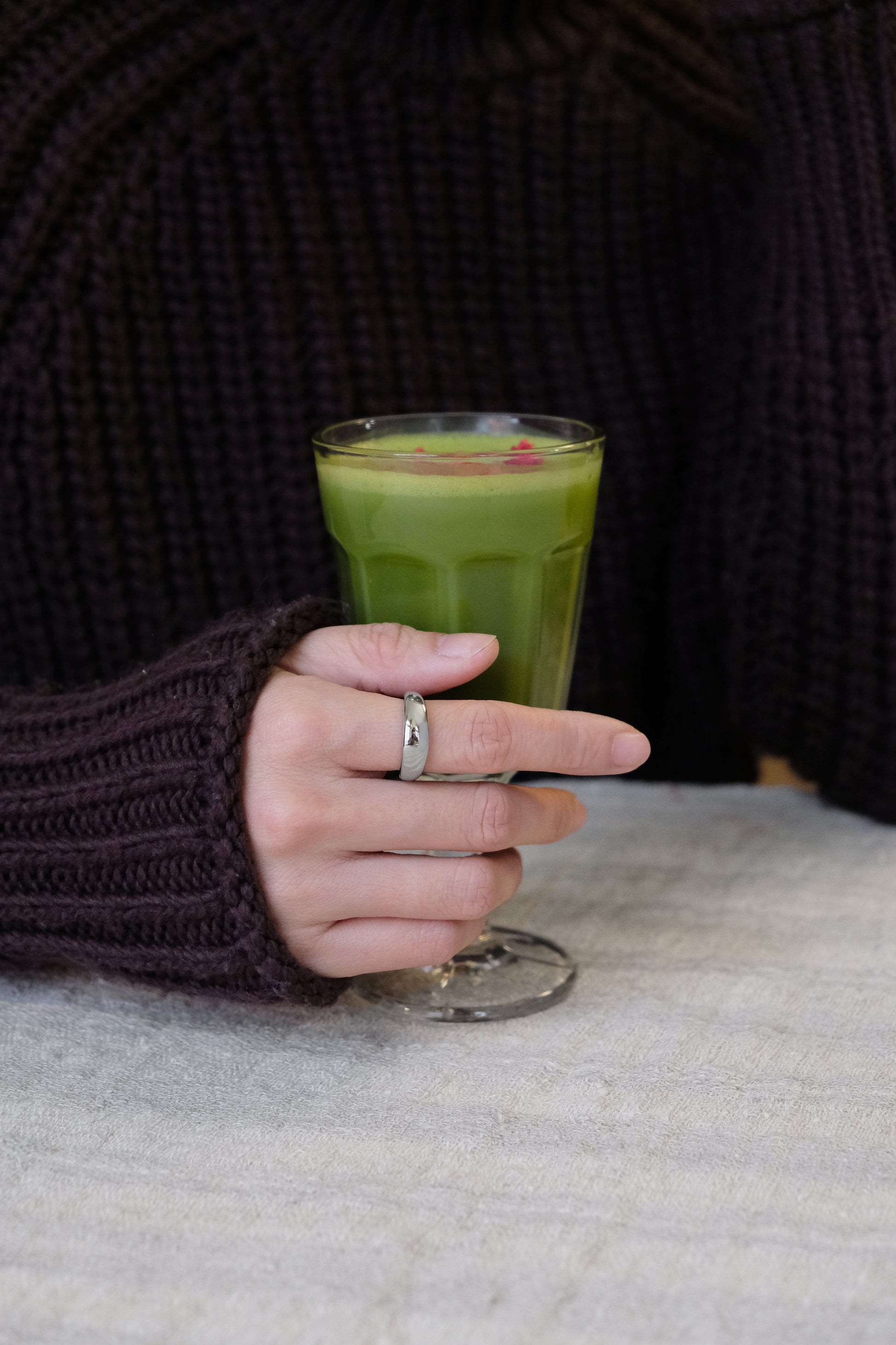 This ring features a soft rounded dome shape with a bold 7 mm width that tapers down to a slim 1.8 mm band for a surprisingly comfortable fit. Its mirror polished finish gives it a smooth, reflective shine that stands out whether worn alone or stacked.