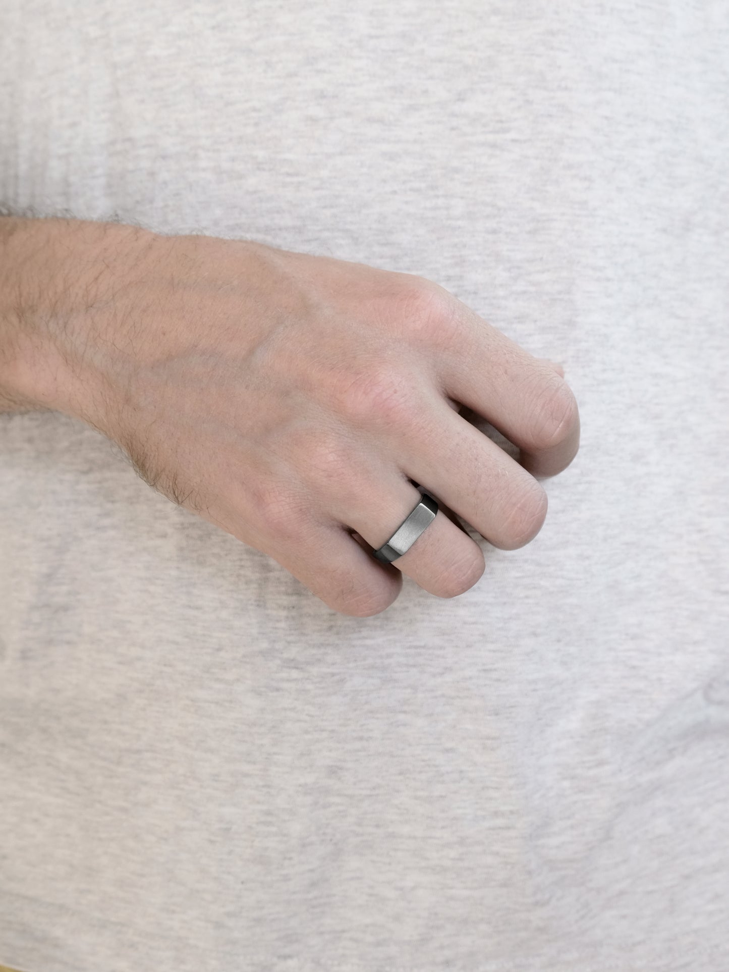 This signet ring blends polished and brushed finishes for a unique yet minimal look. Designed with a narrower lower band, it offers a comfortable fit without feeling too big or bulky. Crafted from durable, hypoallergenic stainless steel. The flat top is perfect for engravingโmake it your own with a personal statement or create a meaningful gift!