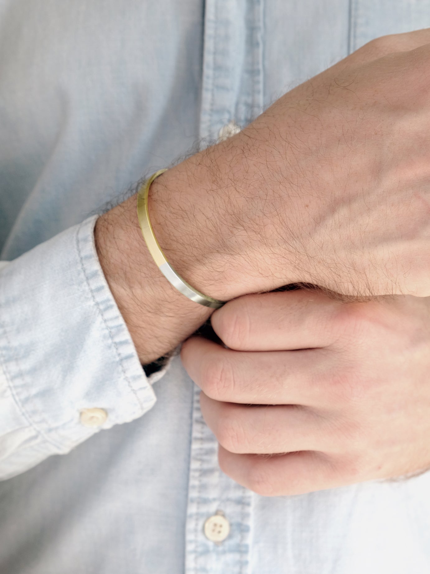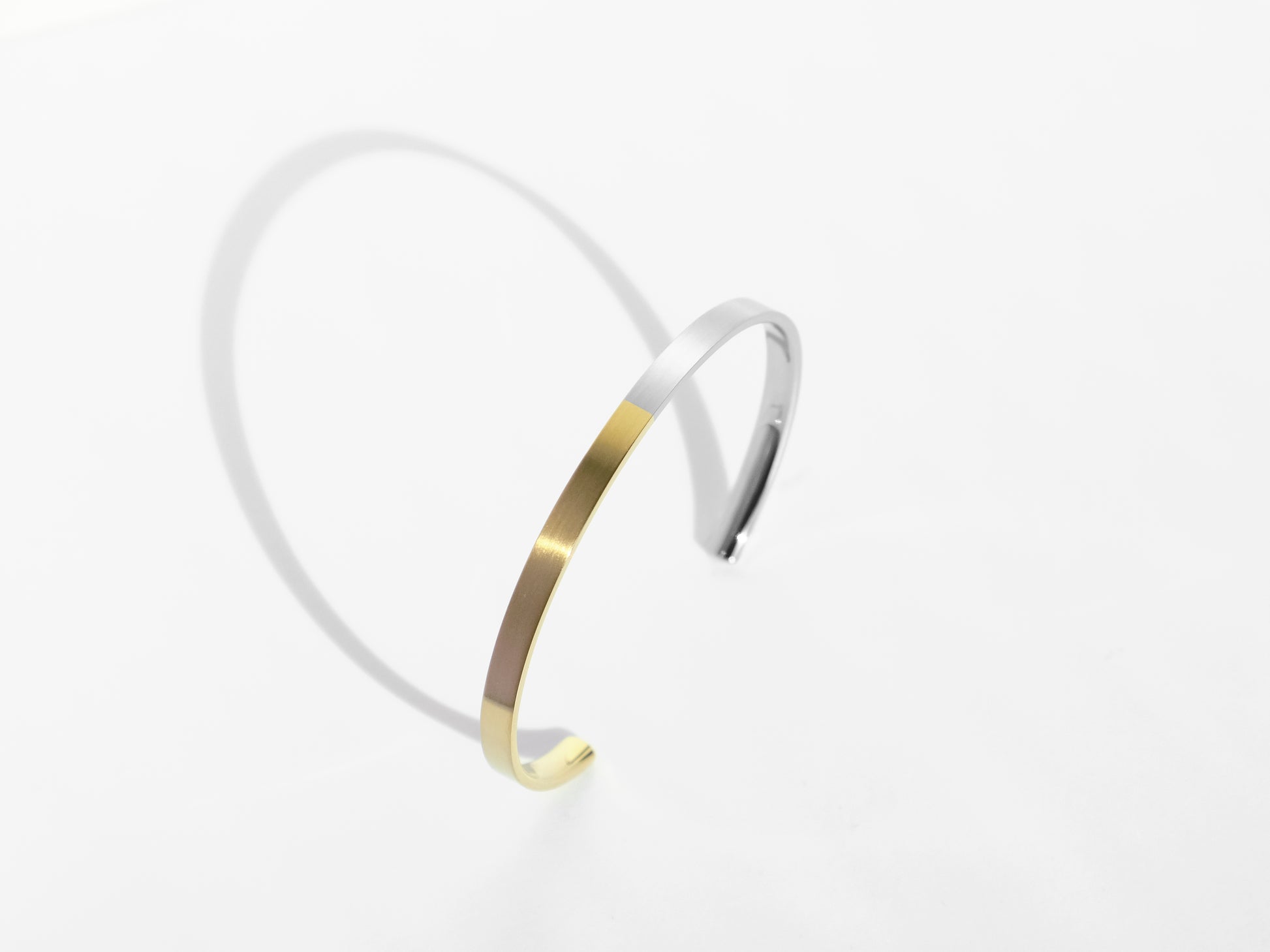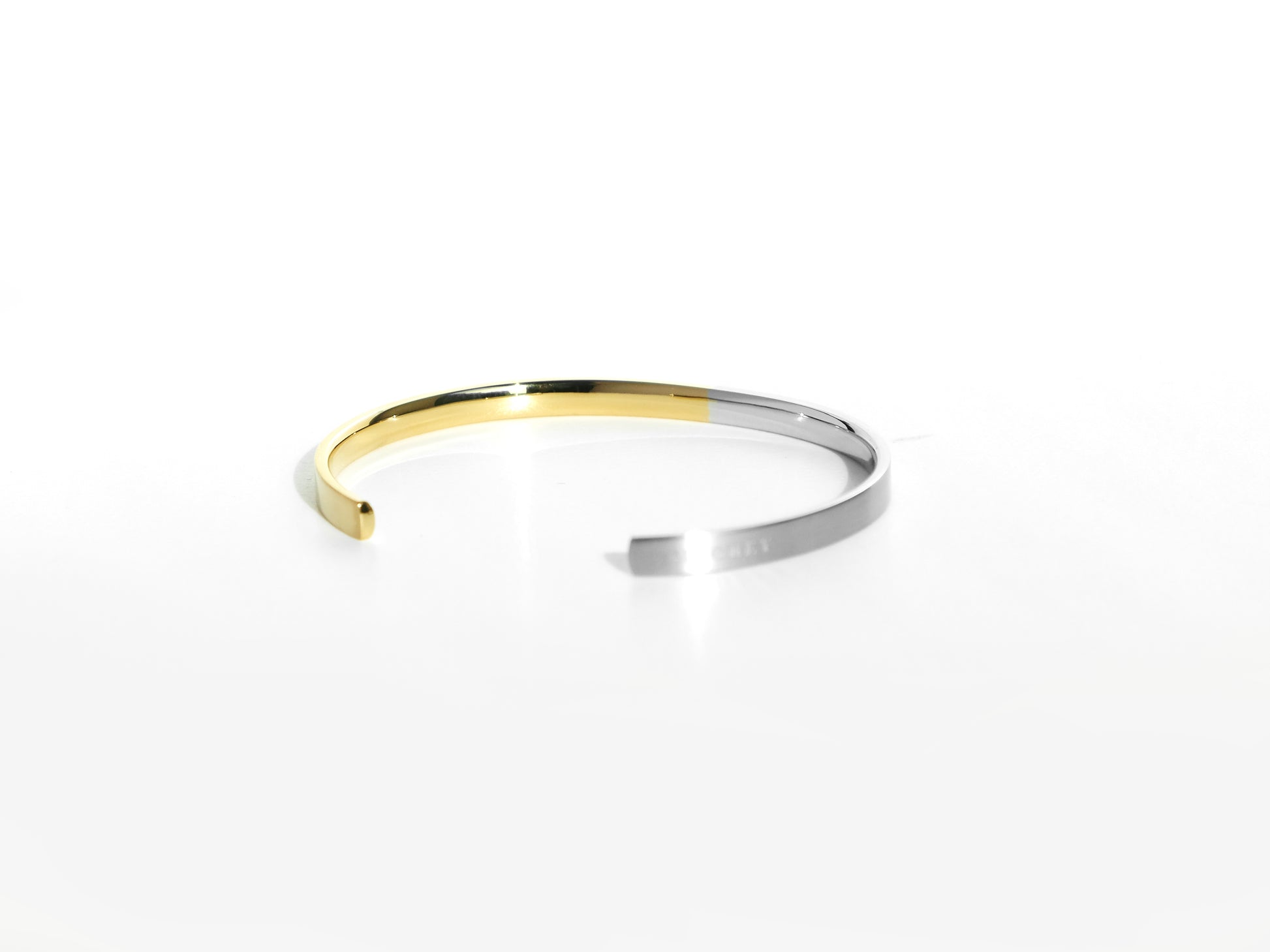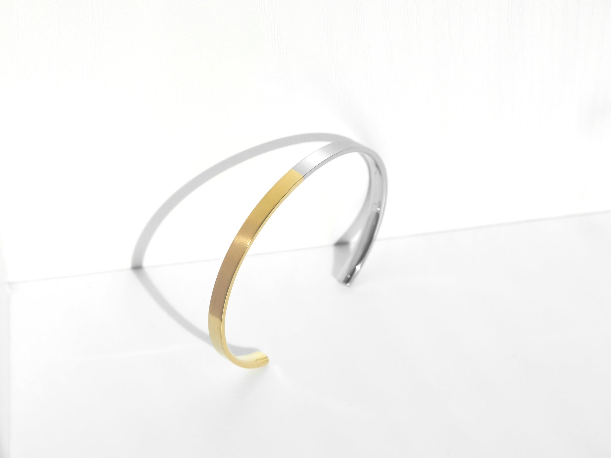 Can’t decide between Gold or Silver? Wear both with this matte-finished two-tone cuff! Its simple yet contemporary design is enhanced by a striking contrast of colors. Crafted from hypoallergenic, tarnish-resistant surgical stainless steel for lasting durability and comfort.