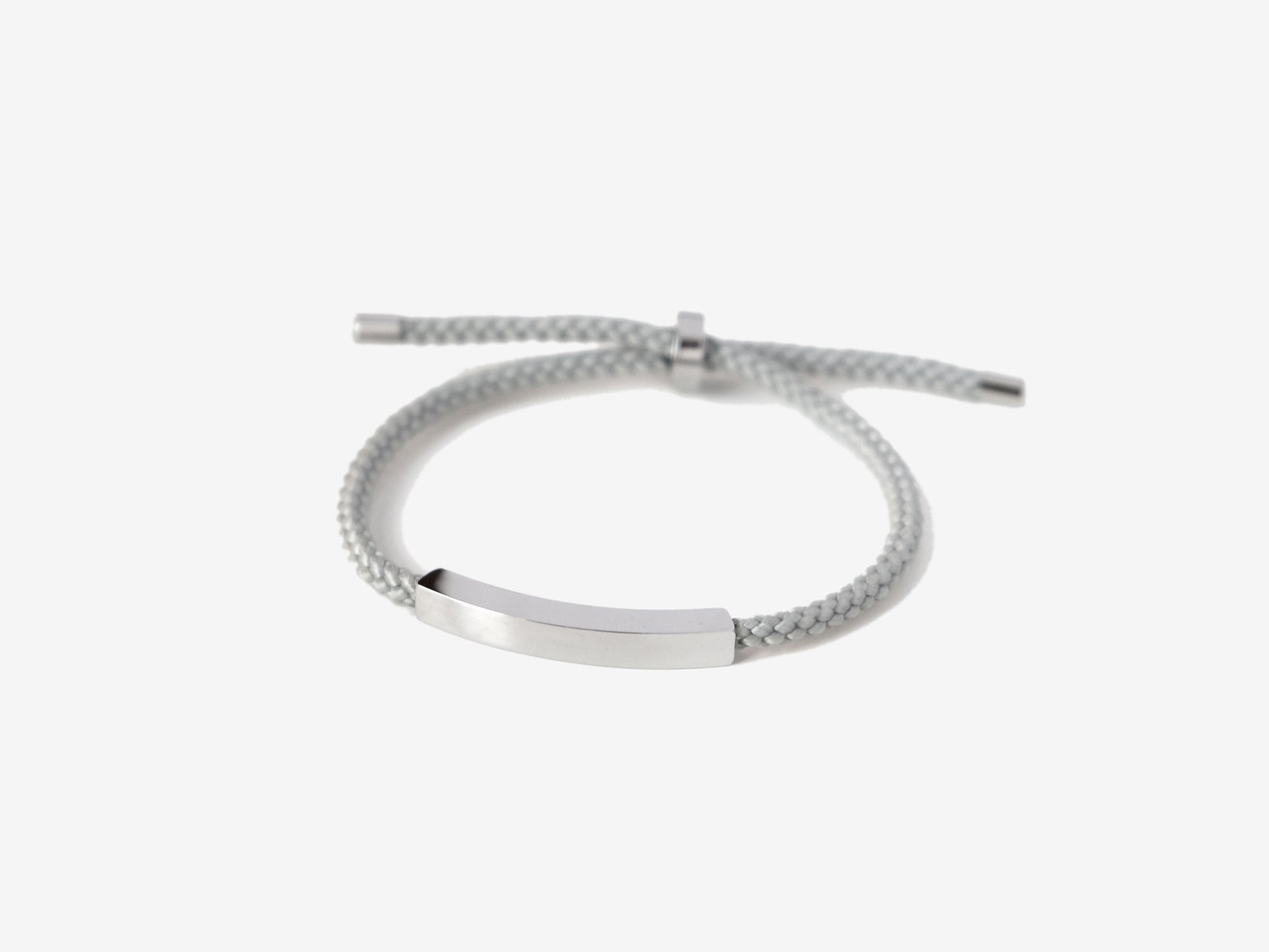 A modern two-tone design featuring an adjustable slider that glides along the rope for a perfect, flexible fitโ€”accommodating wrists up to 22 cm in circumference. Perfect bracelet for adding a personal touch with custom engraving. Choose from a variety of designs and fonts to create a unique and meaningful piece, whether itโ€™s a special date, a heartfelt message, or the name of a loved one.