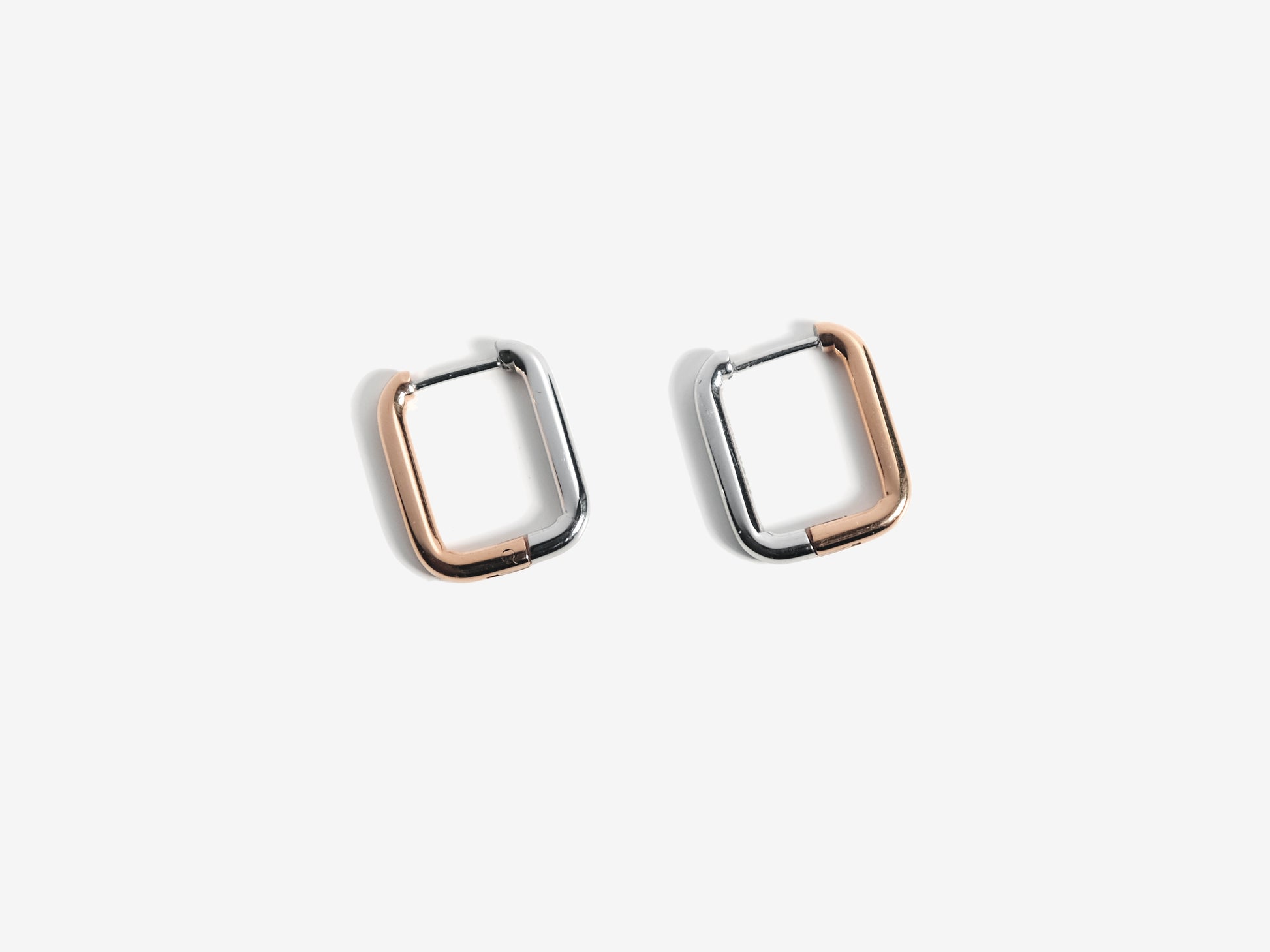 2-Tone Rectangle 耳環 | 玫瑰金