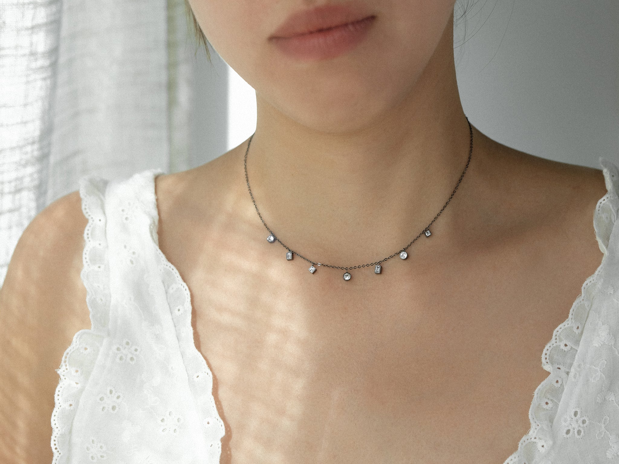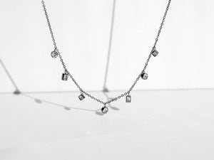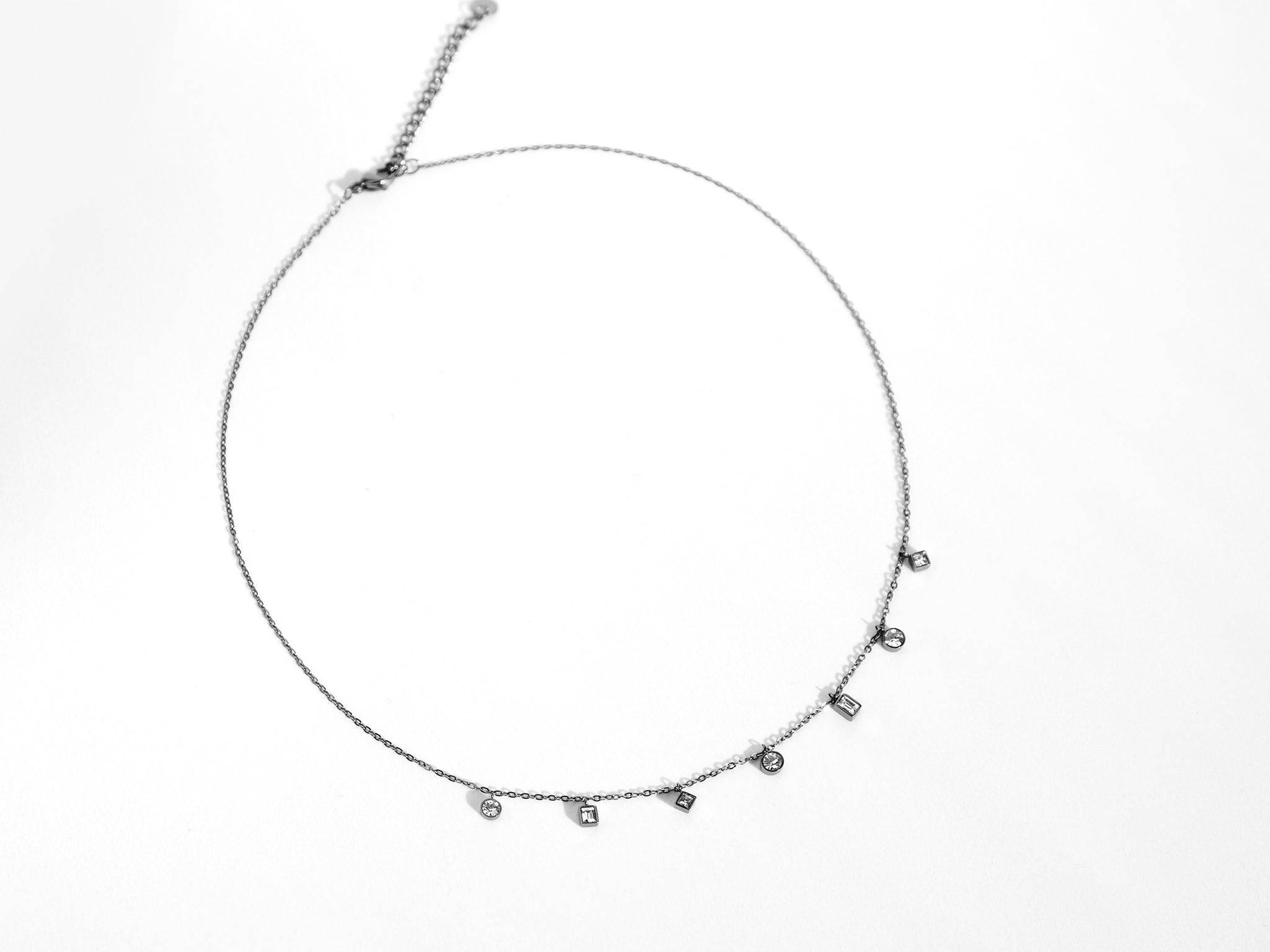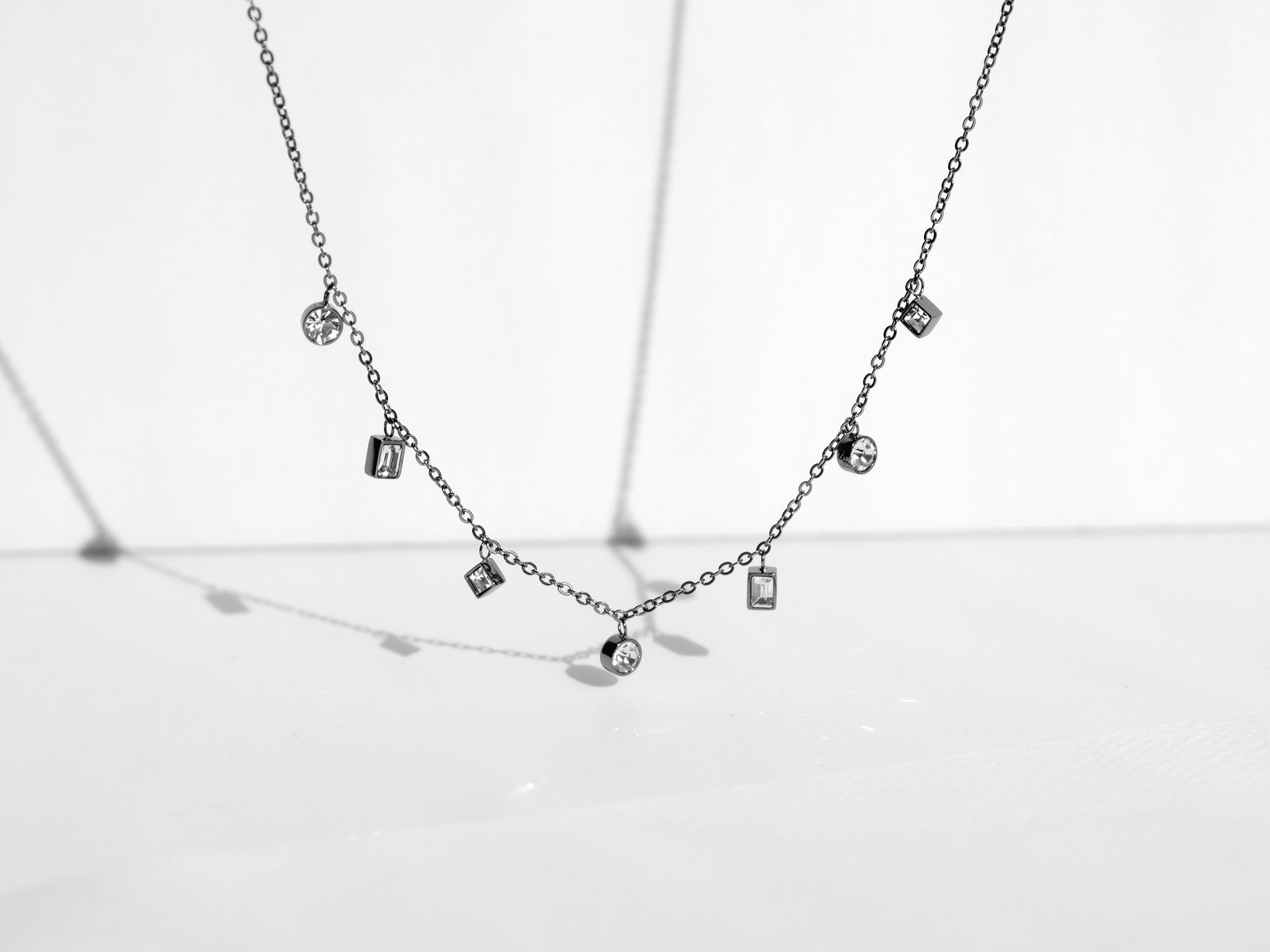 簡約而迷人,這款項鍊以幾何美學為設計靈感,鑲嵌三種不同形狀的寶石。現代感與經典風格兼具,輕鬆搭配各種造型。可調節的鏈長確保完美貼合,高品質不鏽鋼材質則提供耐用性與低過敏特性,讓你安心佩戴。搭配 7-Stone手鍊 ,打造和諧造型!