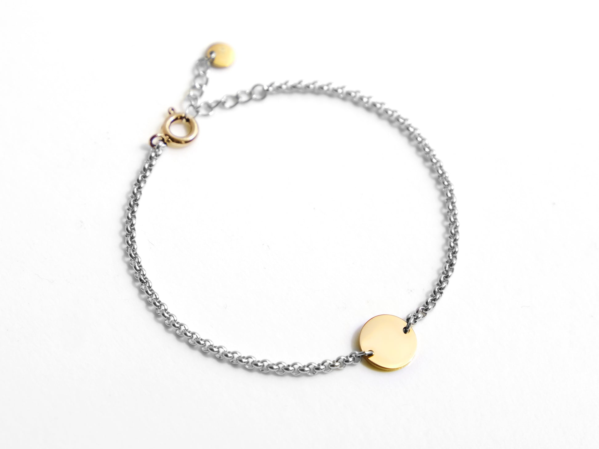 這款精緻手鍊非常適合透過客製刻字增添個人意義,無論是特別訊息或獨特符號,都能展現你的專屬風格。當然,即使不刻字,它的雙色設計依然迷人!可調節尺寸,適用於最大 17.5cm 手圍。吊飾與鏈條皆採用不鏽鋼製成,具備低過敏與抗氧化特性,確保長久耐用與舒適佩戴。