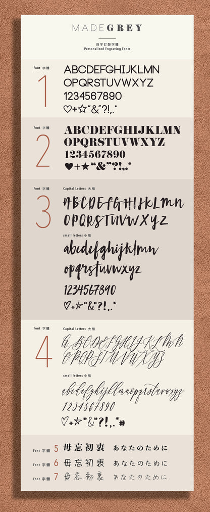 請按照以下說明添加刻字。可選擇最多 8 個字符,刻印於內側。