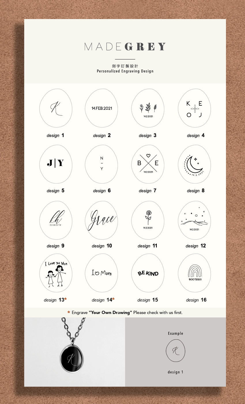 刻字費用(如有)僅包括一位置。 我們可以在產品上刻兩個或以上位置,但請先聯絡我們確認加購