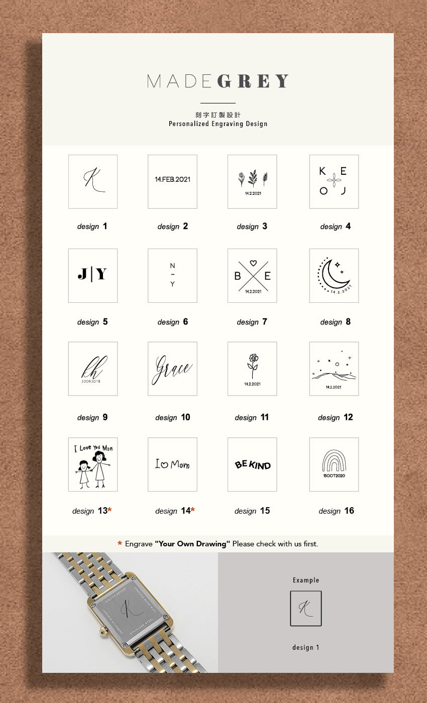 刻字費用(如有)僅包括一位置。 我們可以在產品上刻兩個或以上位置,但請先聯絡我們確認加購
