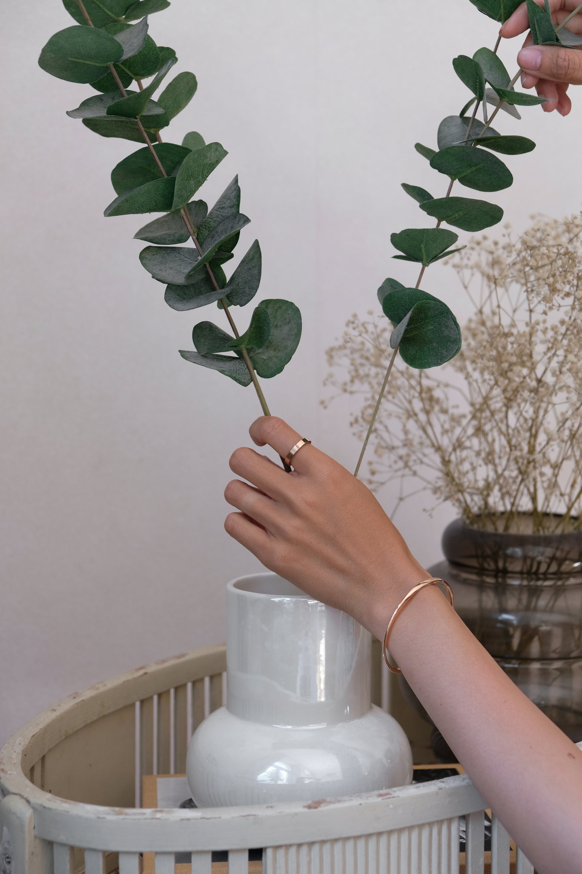 手環沿著環身設計出旋轉的扭紋效果,能從不同角度折射出獨特光影,一面俐落大膽,另一面則顯得細緻柔和。這道扭轉線條為手腕增添流動感的輪廓,如雕塑般靈動有型。選用高品質不鏽鋼打造,耐磨抗氧化,不易褪色或受潮,經久耐用。