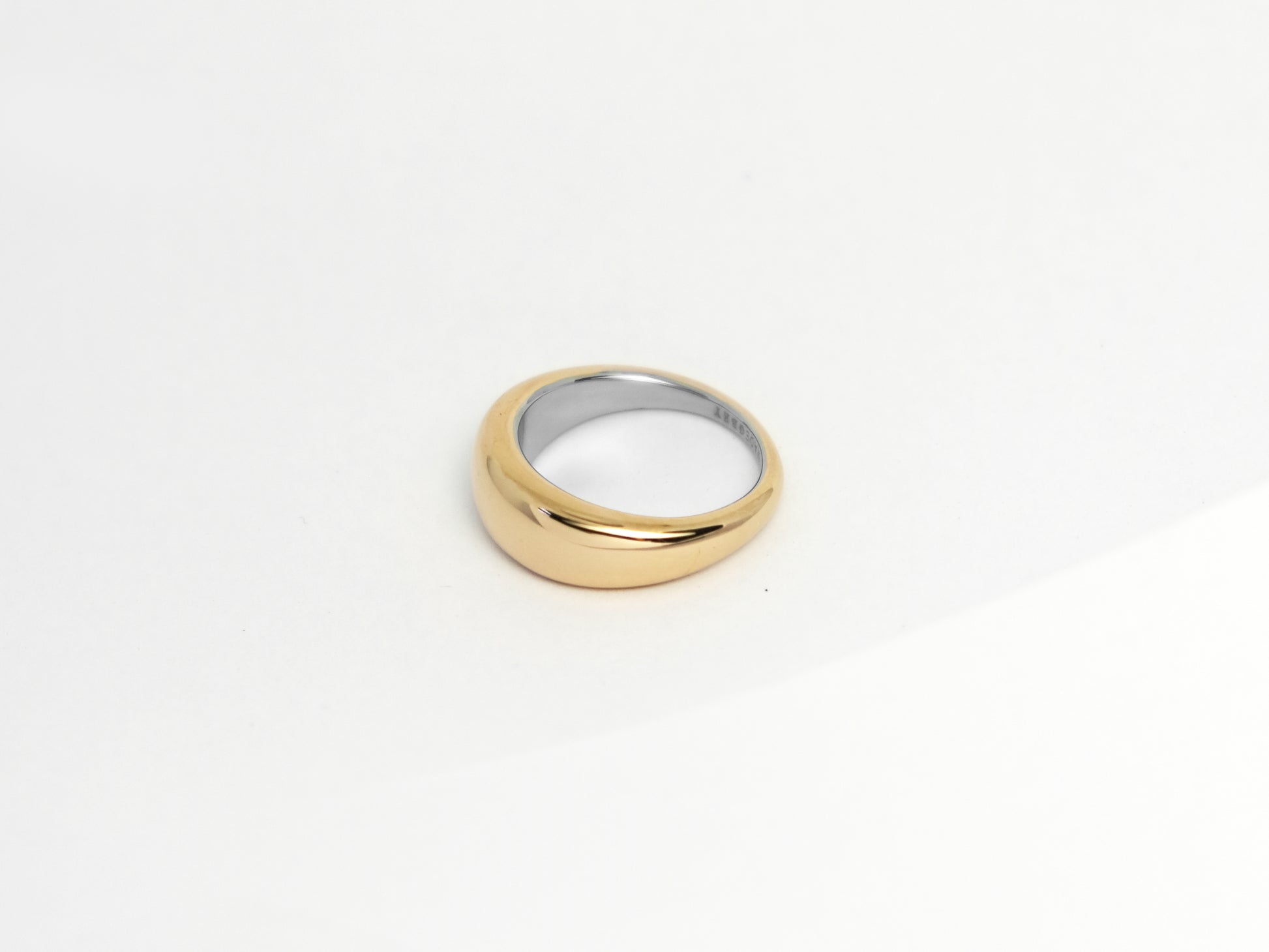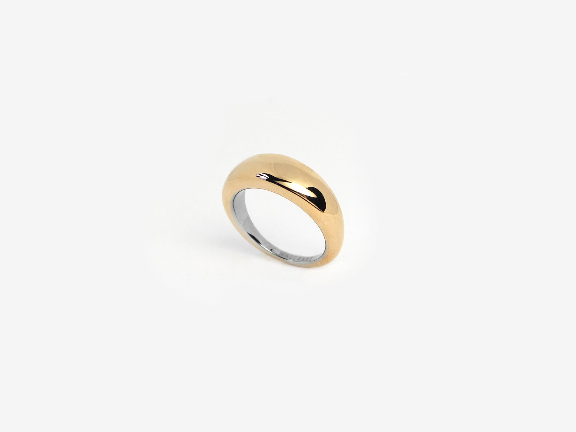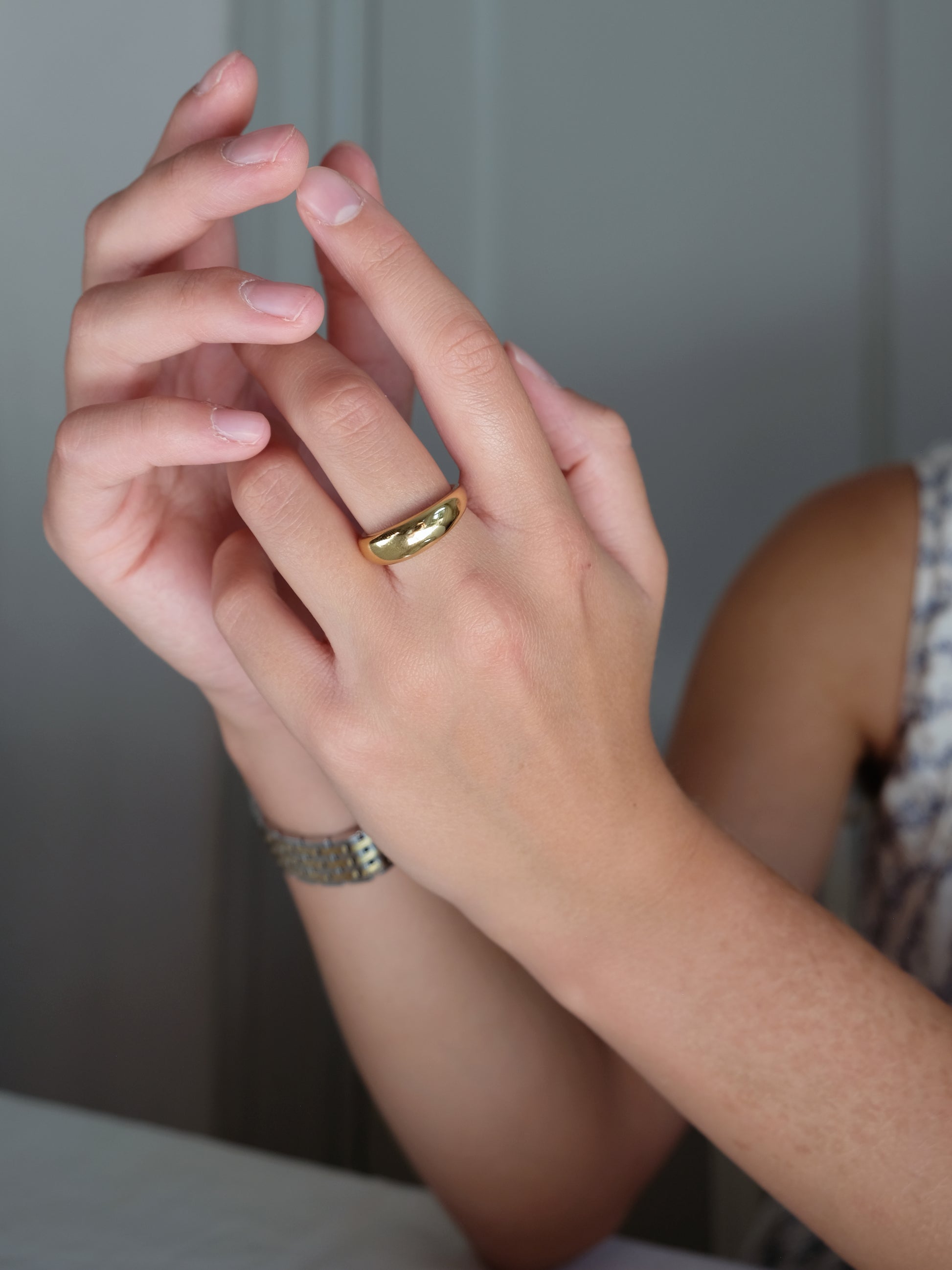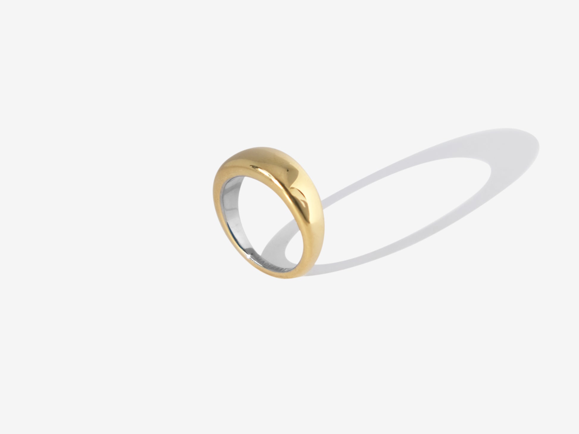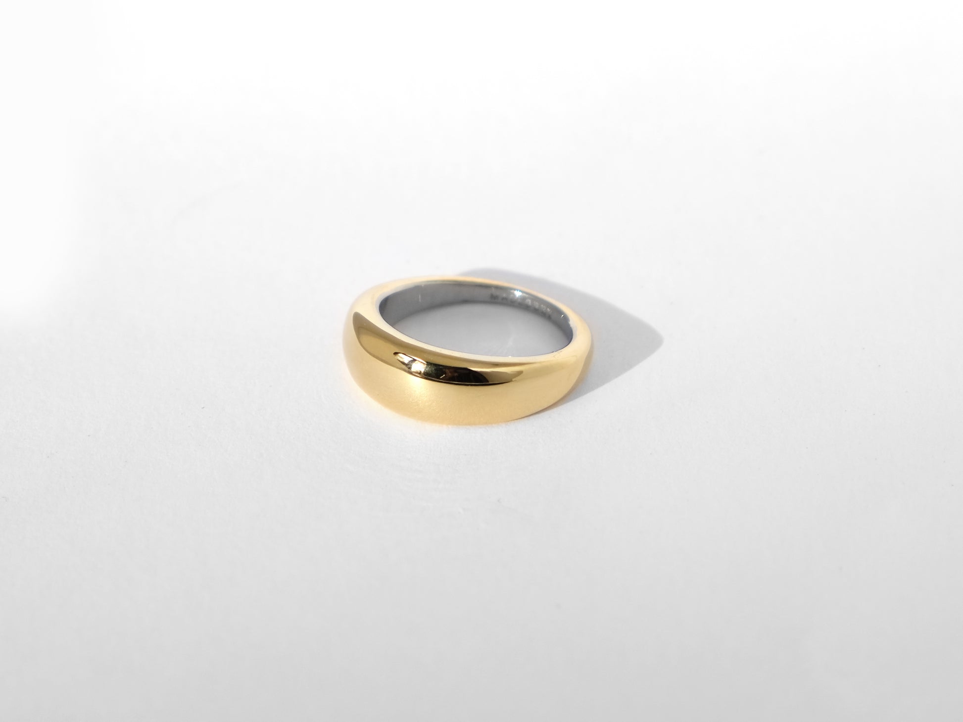 這款戒指以柔和圓潤的拱形設計為特色,頂部寬度達 7 mm,並向下收窄至僅 1.8 mm 的幼身戒臂,佩戴時出乎意料地舒適。鏡面拋光的表面帶來順滑而亮麗的反光效果,無論單獨佩戴或疊戴都同樣吸睛。